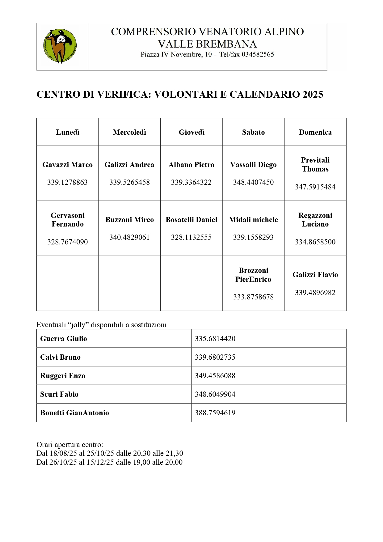 TURNI VERIFICATORI ABILITATI AL CENTRO anno 2025